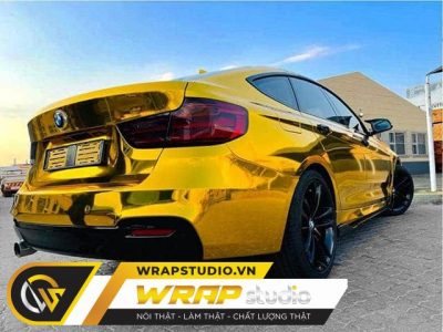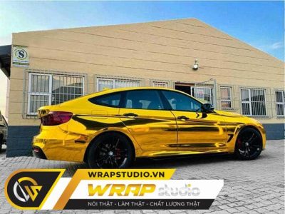 Dán decal oto BMW chrome vàng cực chất