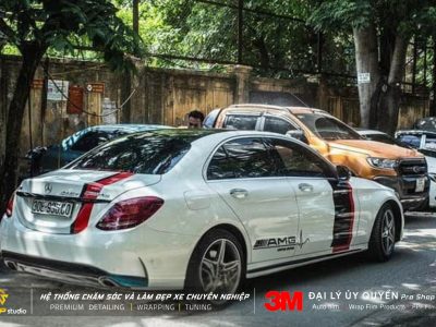 Dán tem là cách nhẹ nhàng để cá nhân hóa chiếc Mercedes của bạn. Một đường line thể thao chạy dọc thân xe, một mảng decal nhỏ ở hông, hoặc dòng chữ AMG đơn giản ở cản sau – những chi tiết này tuy nhỏ nhưng tạo nên khác biệt.